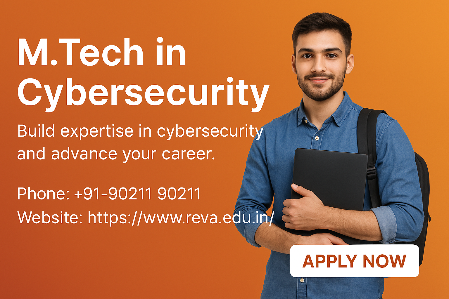 Students pursuing MTech in Cybersecurity can gain strong technical and investigative skills with REVA University offering advanced learning supported by modern labs, industry exposure, and expert faculty. The curriculum focuses on network security, digital forensics, ethical hacking, malware analysis, and secure software systems while encouraging practical problem-solving and professional growth. Learners work on real projects and case studies, preparing for careers in cybersecurity consulting, corporate security teams, government defense roles, research organizations, and technology companies with high demand for skilled security professionals.