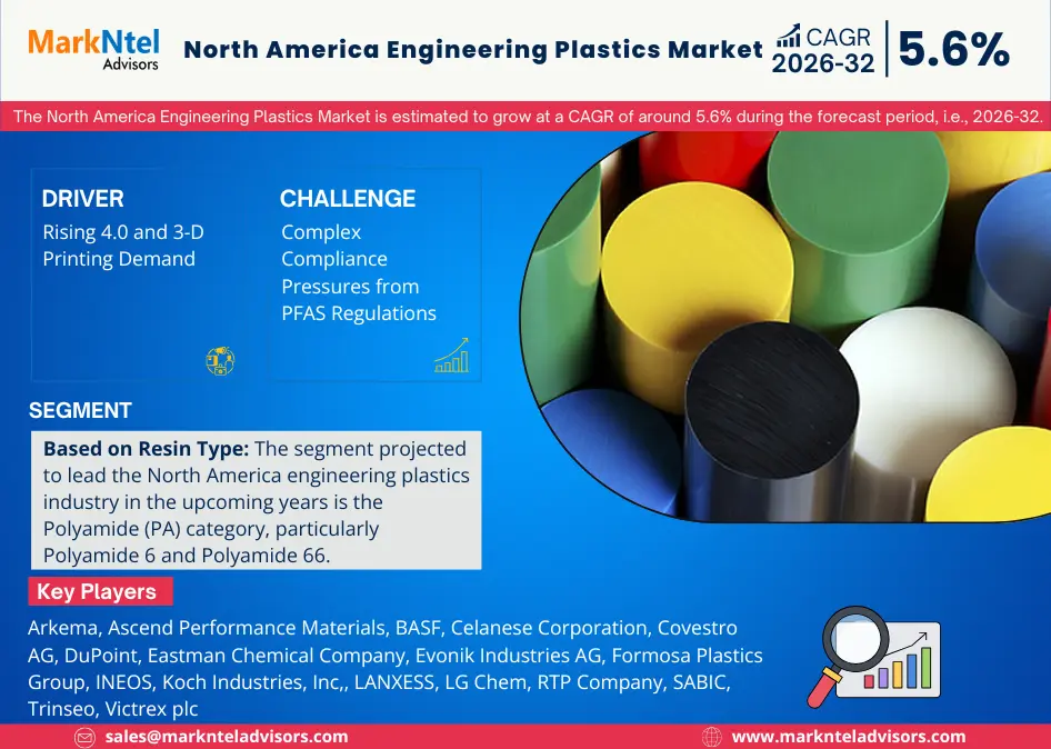 According to MarkNtel Advisors study The future of North America Engineering Plastics Market is estimated to grow at a CAGR of around 5.6% during the forecast period, i.e., 2026-32.