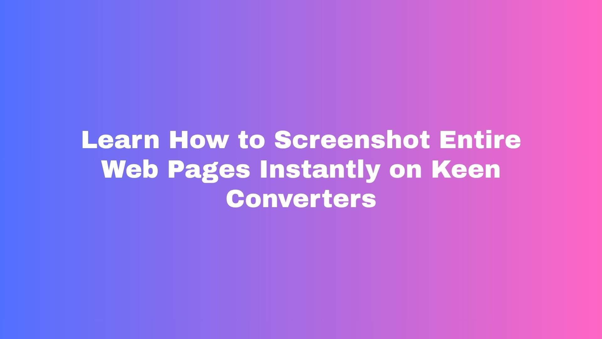 Learn How to Screenshot Entire Web Pages Instantly on Keen Converters