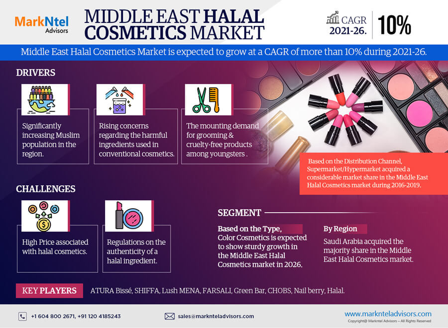 According to MarkNtel Advisors study The future of Middle East Halal Cosmetics Market is anticipated to grow at a CAGR of more than 10% during the forecast period, i.e., 2021-26.