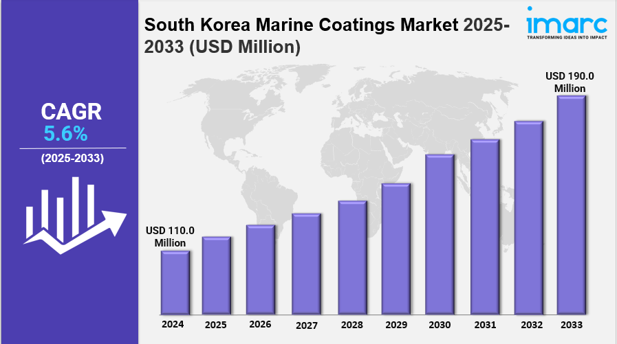 IMARC Group has recently released a new research study titled “South Korea Marine Coatings Market Report by Resin Type (Epoxy, Acrylic, Alkyd, Polyurethane, and Others), Technology (Water Borne Coatings, Solvent Borne Coatings, and Others), Function (Anti-Corrosion, Anti-Fouling, and Others), Application (Marine OEM, Marine Aftermarket), and Region 2025-2033”, offers a detailed analysis of the market drivers, segmentation, growth opportunities, trends and competitive landscape to understand the current and future market scenarios.