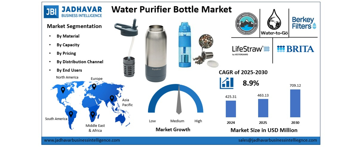Jadhavar Business Intelligence is a Business Consultancy Firm that has published a detailed analysis of the “Water Purifier Bottle Market”. The report includes key business insights, demand analysis, pricing analysis, and competitive landscape. The analysis in the report provides an in-depth aspect at the current status of the Water Purifier Bottle Market.