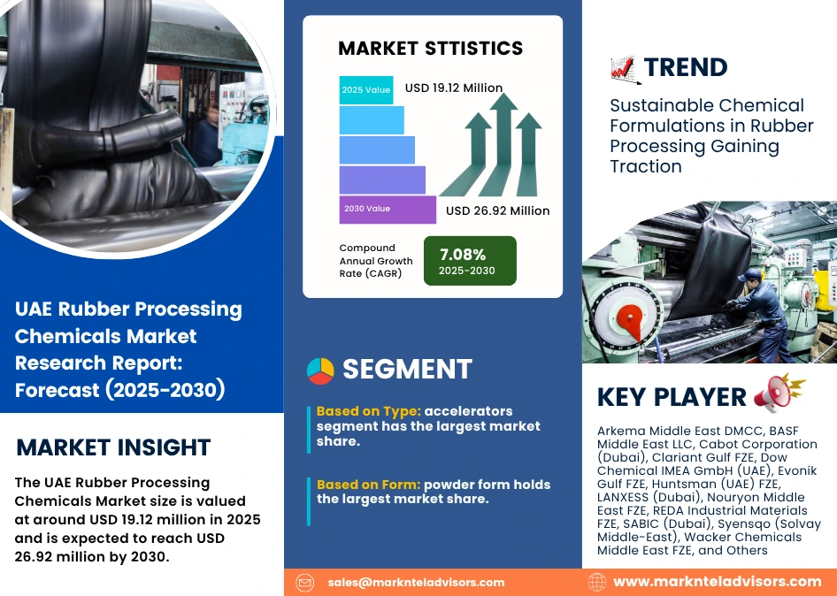 Boost your company's decisions by getting a free sample right away- https://www.marknteladvisors.com/query/request-sample/rubber-processing-chemicals-market-uae.html