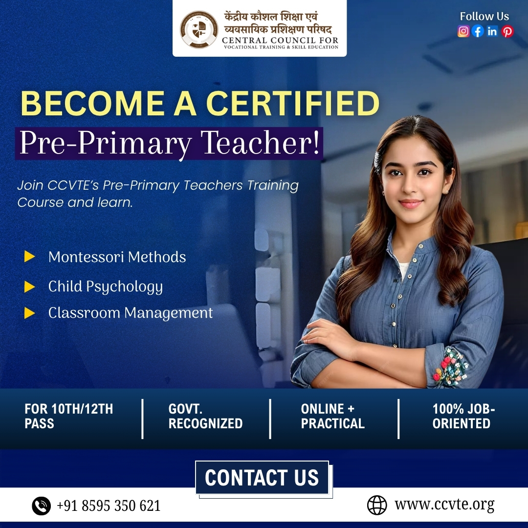 Along with the Pre Primary Teacher Training Course, students can also explore multiple Skill Development Programs from CCVTE. These courses are designed to enhance professional abilities and help students build strong careers in various industries.