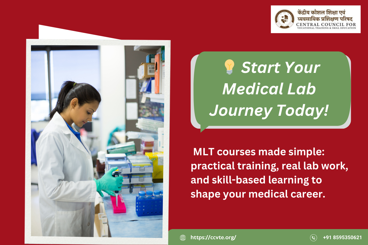 An MLT course (Medical Laboratory Technology course) trains students in performing medical tests, handling lab equipment, analyzing samples, and assisting doctors in diagnosing diseases. It focuses on medical technical skills, making it one of the best vocational and paramedical options after high school.