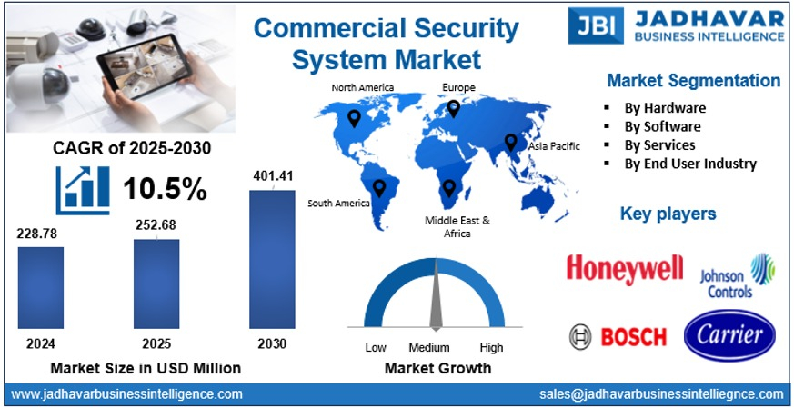 Jadhavar Business Intelligence is a Business Consultancy Firm that has published a detailed analysis of the “Commercial Security System Market”. The report includes key business insights, demand analysis, pricing analysis, and competitive landscape. The analysis in the report provides an in-depth aspect at the current status of the Commercial Security System Market.