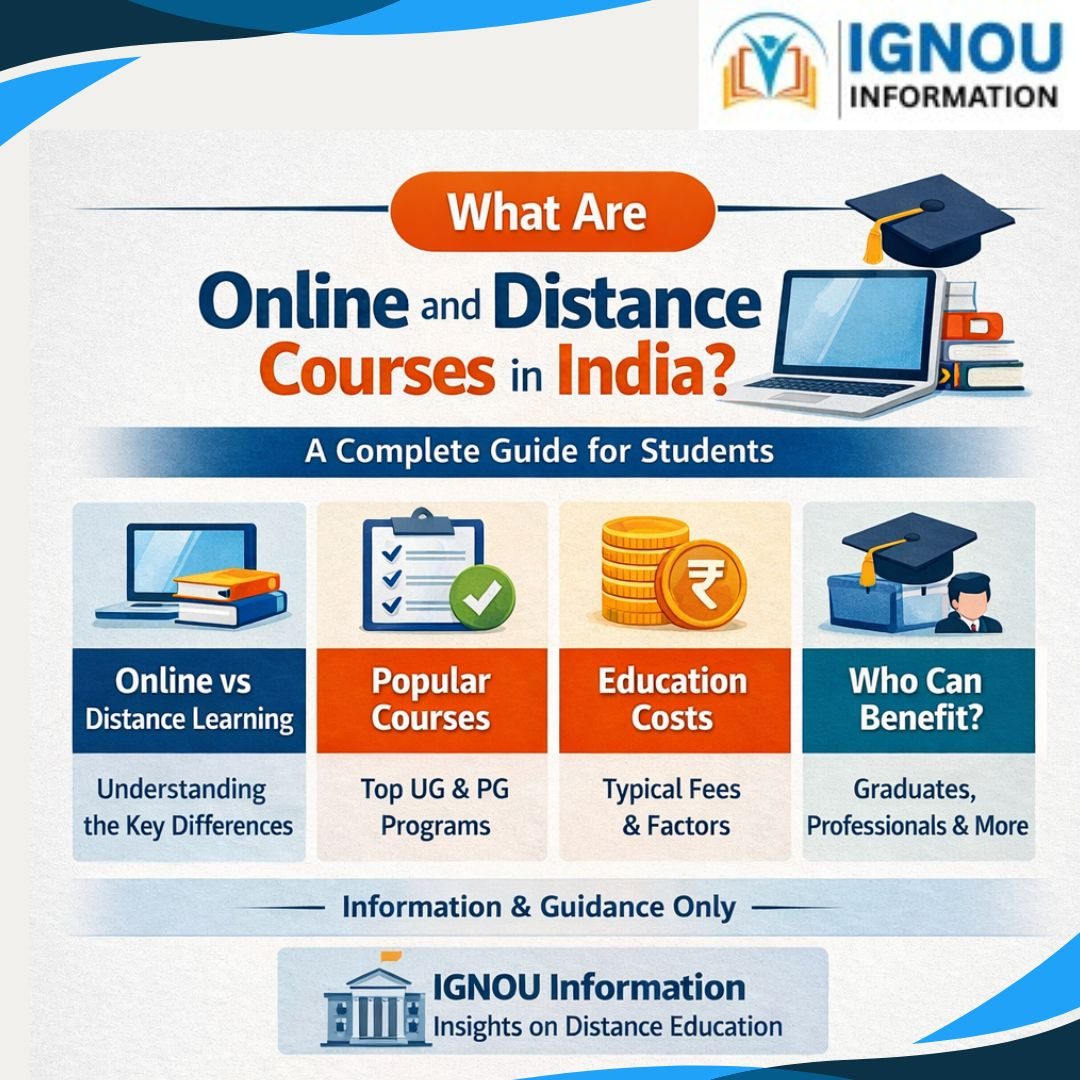 Distance learning and online courses work differently. Distance learning focuses on self-study using printed or digital materials, with exams conducted at designated centers. Online courses use internet-based platforms where students attend live or recorded classes, submit assignments online, and interact with teachers virtually. Both options follow structured academic systems offered by recognized institutions in India.