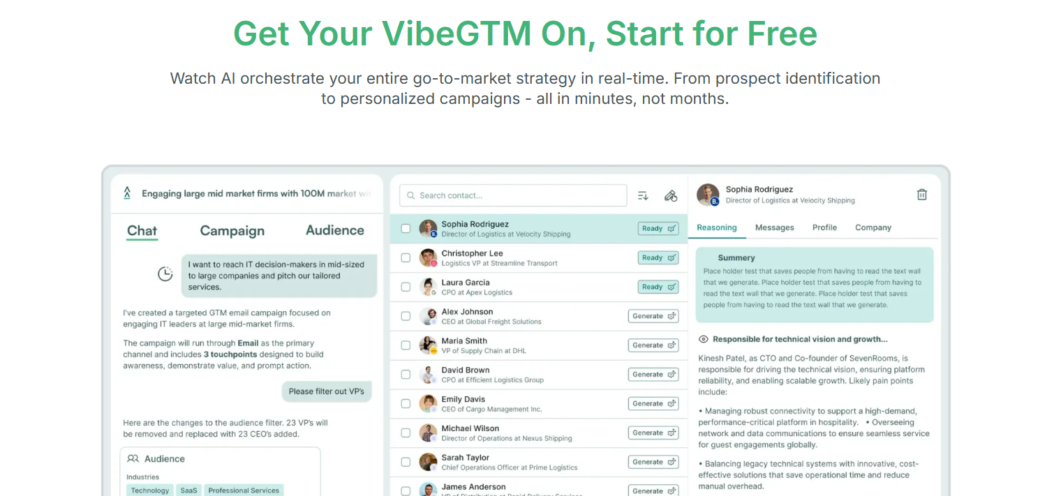 • Always-On Campaigns – VibeGTM runs 24/7, engaging buyers across time zones and off-hours.