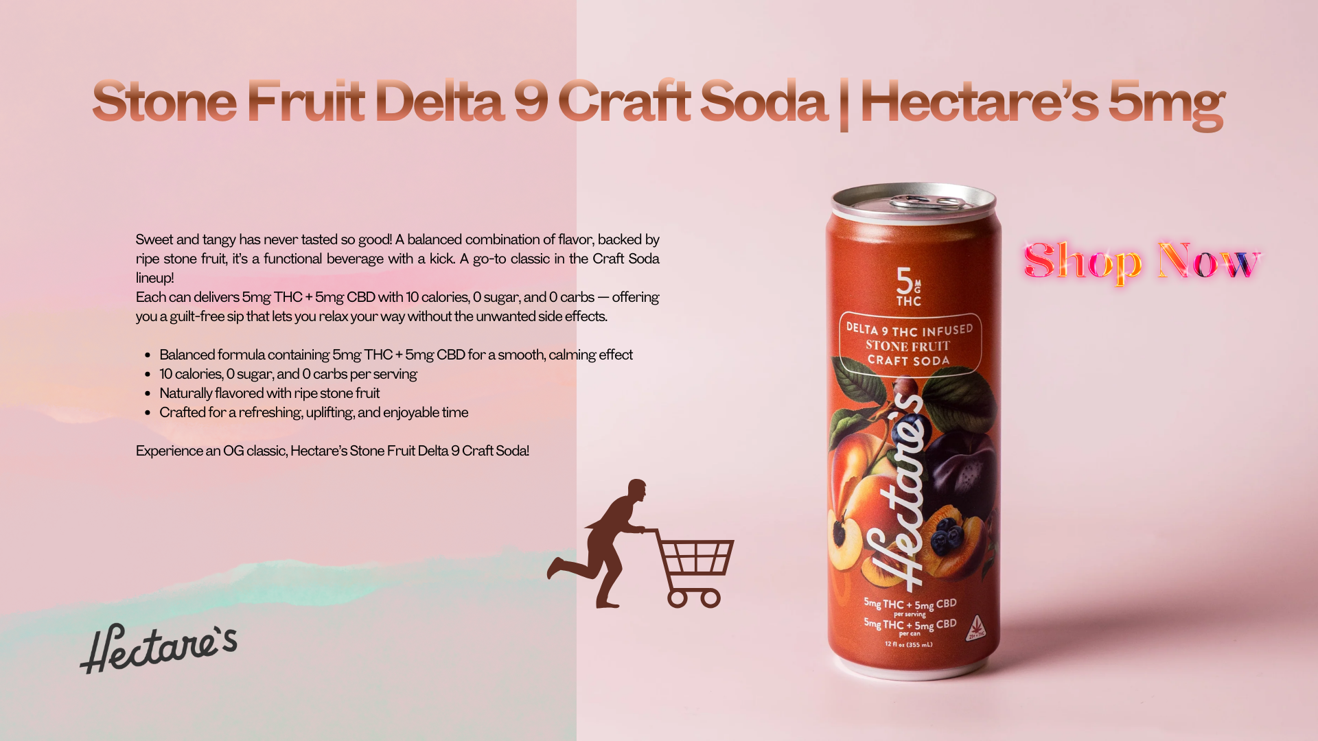 Hectares’ fruit seltzer drinks deliver crisp, sparkling carbonation paired with vibrant fruit flavors. The Stone Fruit Delta 9 Craft Soda offers a naturally sweet, refreshing taste that has become a favorite among sparkling beverage enthusiasts.