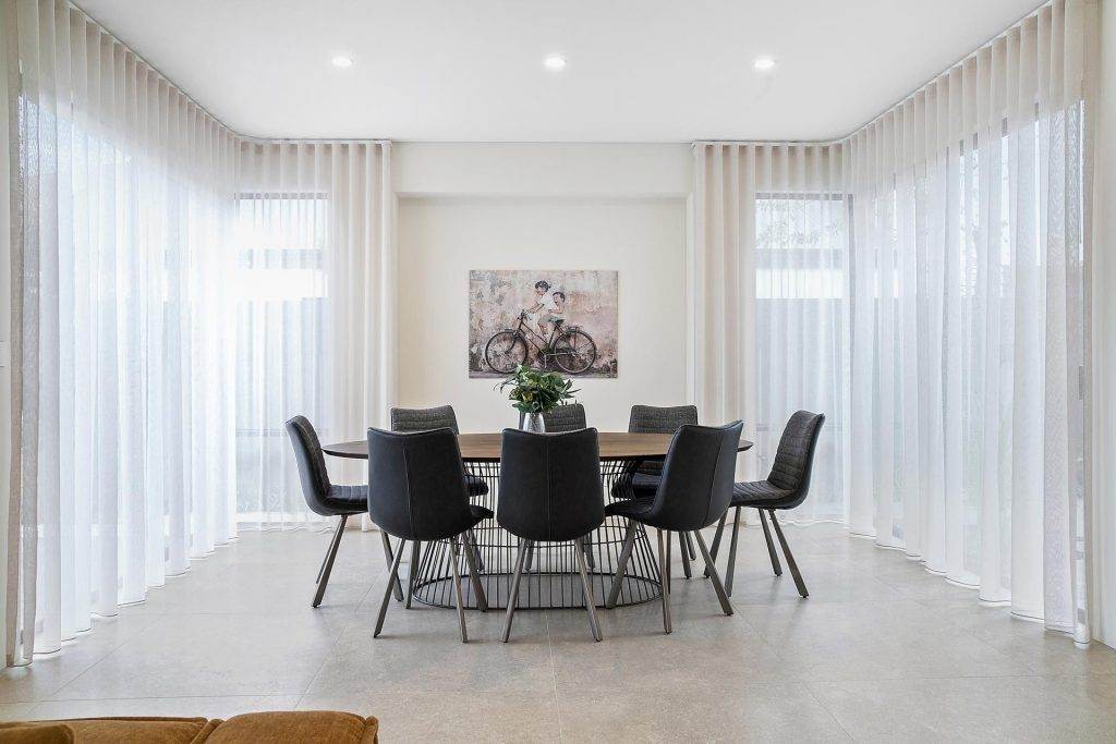 Lighter eyelet curtains are perfect for kitchens and dining spaces. They allow natural light to brighten the area while maintaining privacy and adding a clean, modern look.
