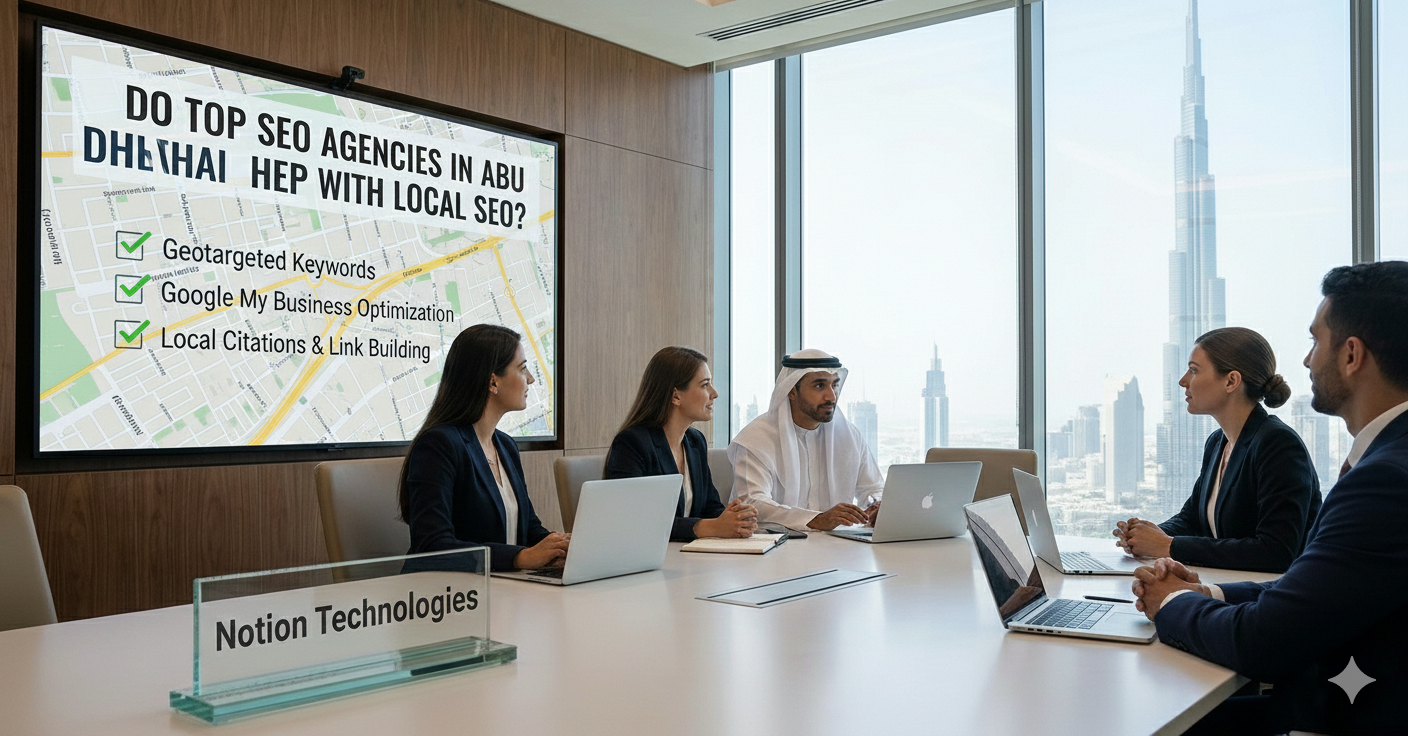 Top SEO agencies in Abu Dhabi play a vital role in helping businesses succeed with local SEO by improving visibility, driving targeted traffic, and increasing customer engagement. Through Google Business optimization, local content, mobile optimization, and reputation management, businesses can strengthen their local presence and achieve sustainable growth. For organizations seeking expert local SEO solutions tailored to Abu Dhabi’s competitive market, Notion Technologies delivers results-driven strategies aligned with business goals.