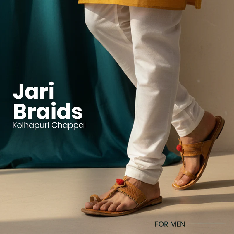 Pair Flat Tip Elegance with linen shirts for smart-casual brunches, or Vintage Braids with shorts for beach vibes, showcasing Kolhapuri's global runway appeal. For formal events, Brown Badshah's regal lines under trousers mimic loafers, while Sparkle Seaweed adds edge to urban outfits. Accessorize with minimalist watches to highlight the leather's natural sheen.