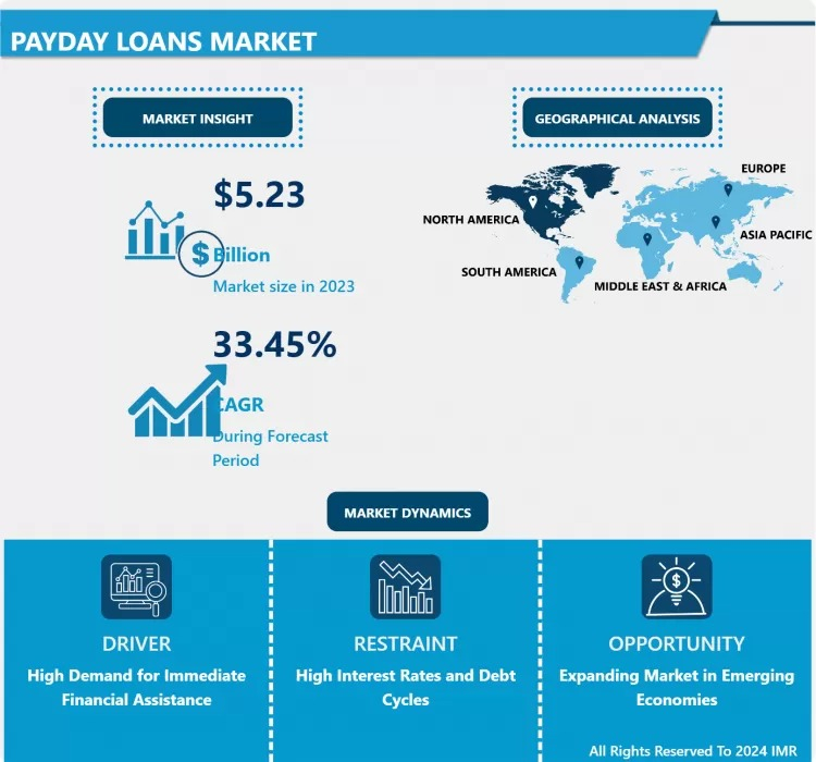 According to a new report published by Introspective Market Research, Payday Loans Market by Loan Type, Distribution Channel, End-User, and Region, The Global Payday Loans Market Size Was Valued at USD 33.45 Billion in 2023 and is Projected to Reach USD 52.92 Billion by 2032, Growing at a CAGR of 5.23%.