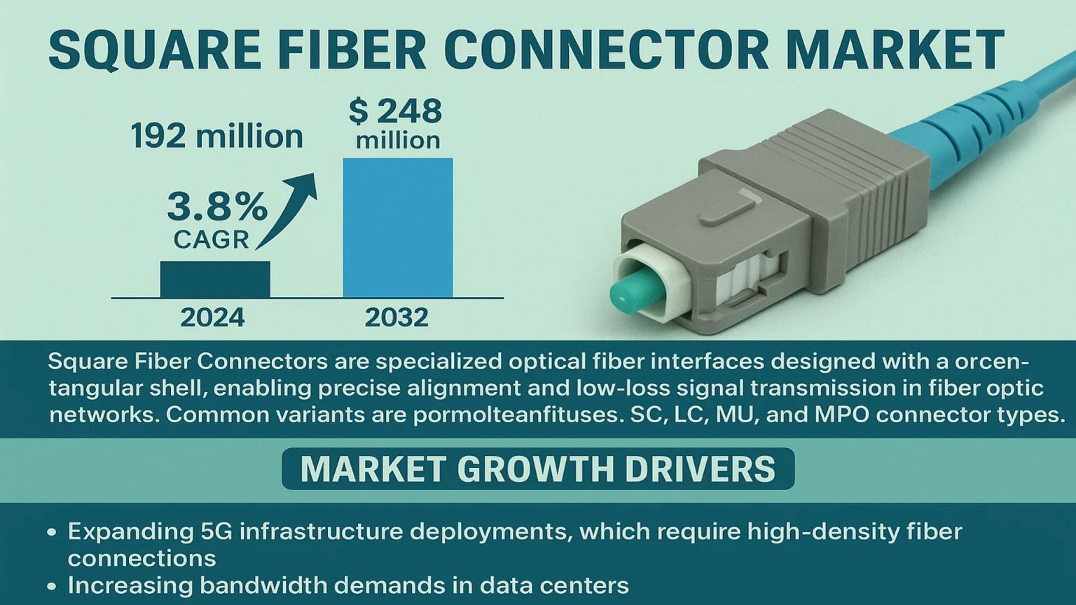 Square Fiber Connector Market to Grow from USD 192 Million in 2024 to USD 248 Million by 2032