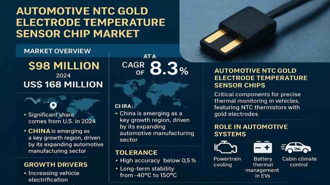 Automotive NTC Gold Electrode Temperature Sensor Chip Market, valued at USD 98 million in 2024, is poised for substantial growth, projected to reach USD 168 million by 2032. This expansion, reflecting a compound annual growth rate (CAGR) of 8.3%, is detailed in a comprehensive new report published by Semiconductor Insight. The study underscores the critical role these precision components play in modern automotive thermal management systems, particularly in electric vehicles and advanced powertrains.