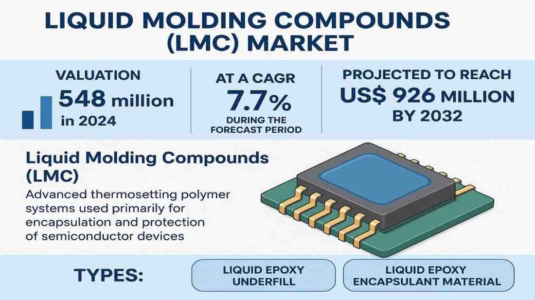 Liquid Molding Compounds (LMC) Market, valued at a robust US$ 548 million in 2024, is on a trajectory of significant expansion, projected to reach US$ 926 million by 2032. This growth, representing a compound annual growth rate (CAGR) of 7.7%, is detailed in a comprehensive new report published by Semiconductor Insight. The study highlights the critical role of these advanced materials in ensuring reliability, thermal management, and miniaturization within semiconductor packaging, particularly for high-performance computing, automotive electronics, and 5G infrastructure.