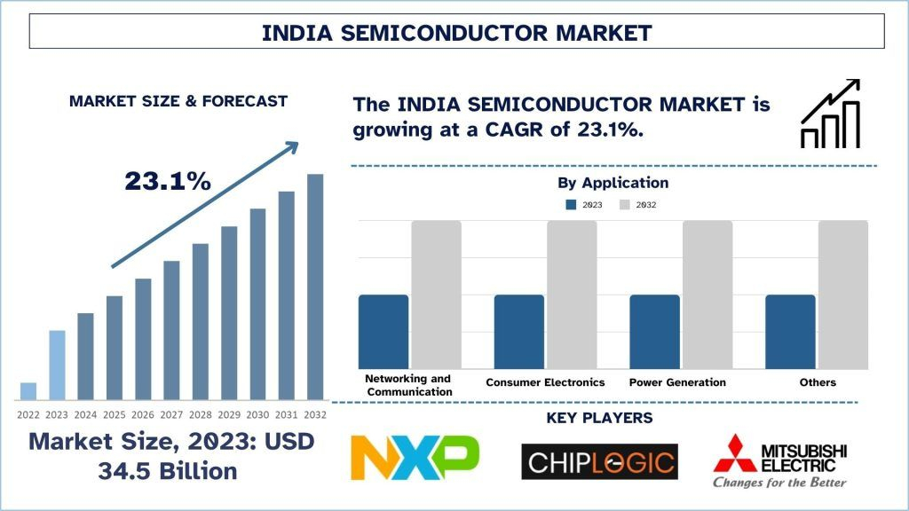 According to the UnivDatos, rising demand for electronics, growing government initiatives, and rapid digital transformation across the globe will drive the scenario of the Indian semiconductor market. As per their “India Semiconductor Market” report, the global market was valued at ~USD 34.5 billion in 2023, growing at a CAGR of about 23.1% during the forecast period from 2024-2032 to reach USD billion by 2032.