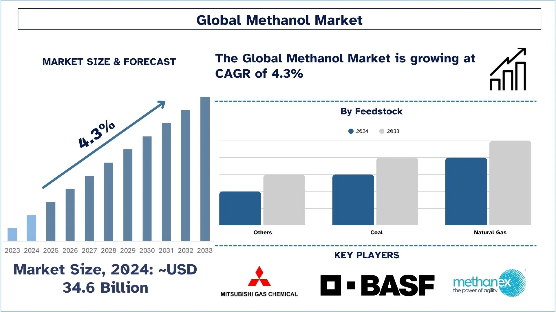 • Rising Industrial & Petrochemical Demand: Methanol’s use as a precursor in producing formaldehyde, acetic acid, MTBE, and solvents supports a wide range of end-use sectors such as construction, automotive, textiles, and plastics, propelling overall demand.