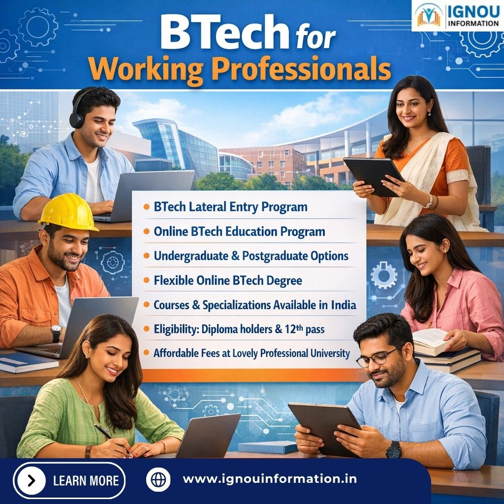 For working professionals in 2026, pursuing a BTech online degree is a practical and effective way to enhance skills, career opportunities, and professional credibility. Programs like BTech for Working Professionals and BTech Lateral Entry provide flexible learning schedules, industry-relevant curricula, and recognized qualifications, enabling students to balance education and career successfully.