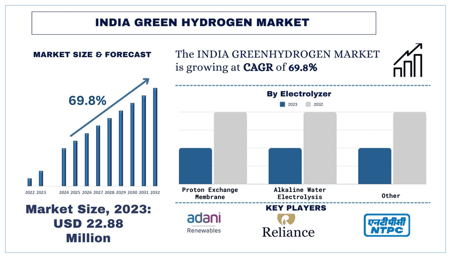 According to the Universal Data Solutions, various key players in the renewable sector are collaborating to reduce the price of electrolyzes which will eventually reduce the overall cost of green hydrogen production. As per their “India Green Hydrogen Market” report, the global market is at a CAGR of 69.8% during the forecast period from 2024 - 2032 to reach USD 2686.78 million by 2032.