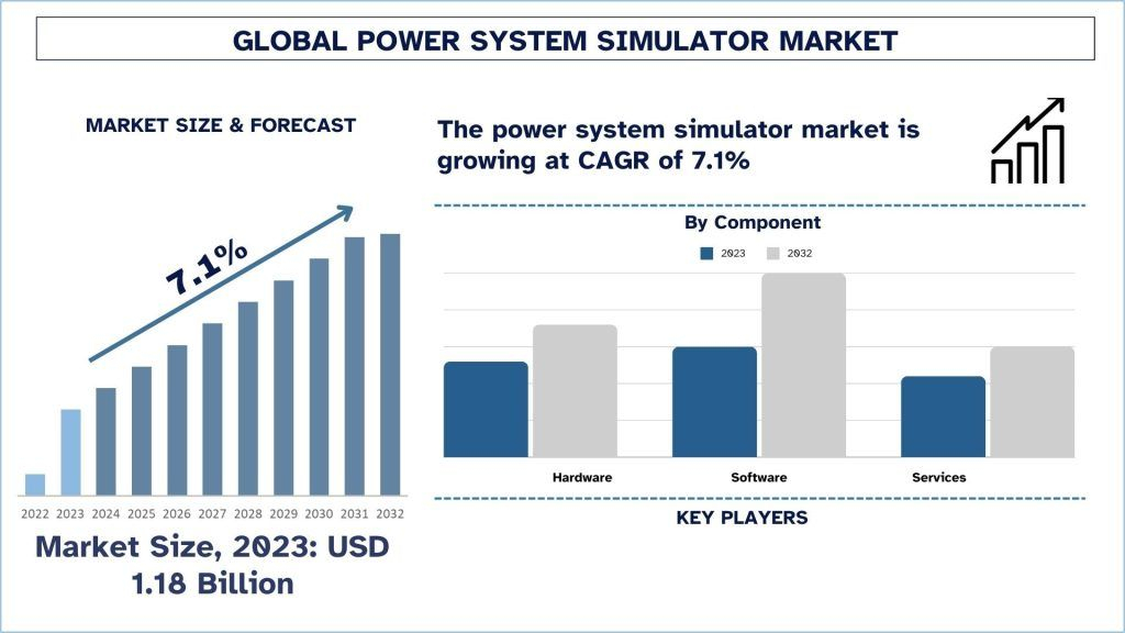 The Power System Simulator Market was valued at approximately USD 1.18 Billion in 2023 and is expected to grow at a robust CAGR of around 7.1 % during the forecast period (2024-2032)
