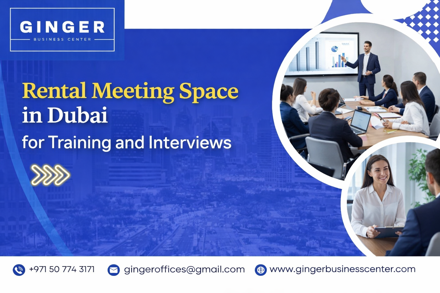 In conclusion, whether you're conducting interviews or hosting training sessions, finding the right meeting room for rent is crucial. Ginger Business Center in Dubai offers an ideal setting with its convenient, well-equipped spaces. By choosing a trusted and professional environment, you ensure your events are successful and hassle-free. For the best meeting room for rent in Dubai, consider Ginger Business Center as your go-to solution.