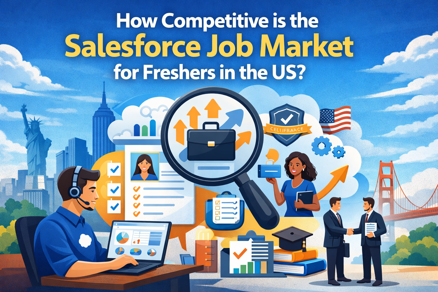 The Salesforce job market in the United States remains one of the most active and opportunity-rich segments of the IT ecosystem in 2026. As organizations across healthcare, finance, retail, technology, and government continue to invest in customer relationship management platforms, the demand for skilled Salesforce professionals continues to grow. For freshers, however, opportunity often comes with competition. Employers seek candidates who not only understand the platform but can apply it in real-world business scenarios.