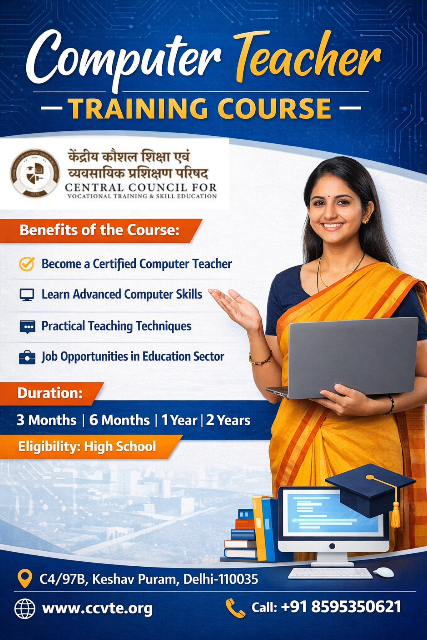 Candidates who have completed high school can enroll in this course. No prior teaching experience is required, making it suitable for beginners, freshers, and aspiring educators who want to enter the field of computer teaching.