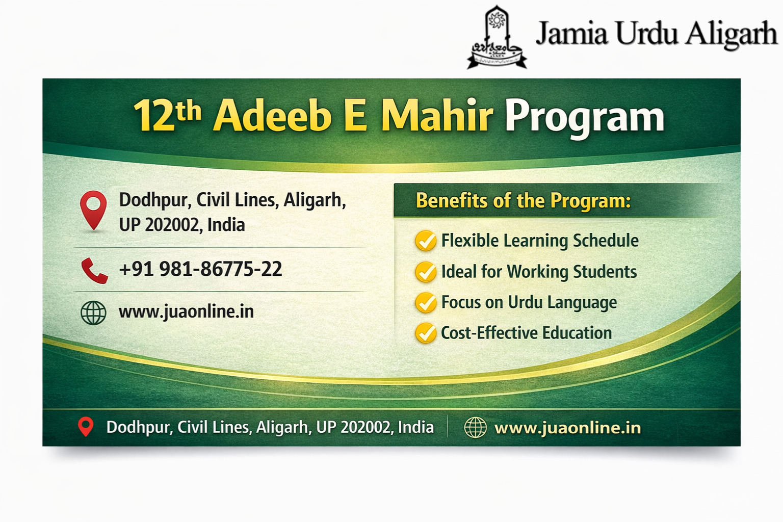 Whether you aim for higher education, better job prospects, or personal academic growth, the 12th Adeeb E Mahir Program serves as a reliable foundation. With structured coursework, recognized certification, and learner-friendly admission processes, this program continues to support students across diverse backgrounds.
