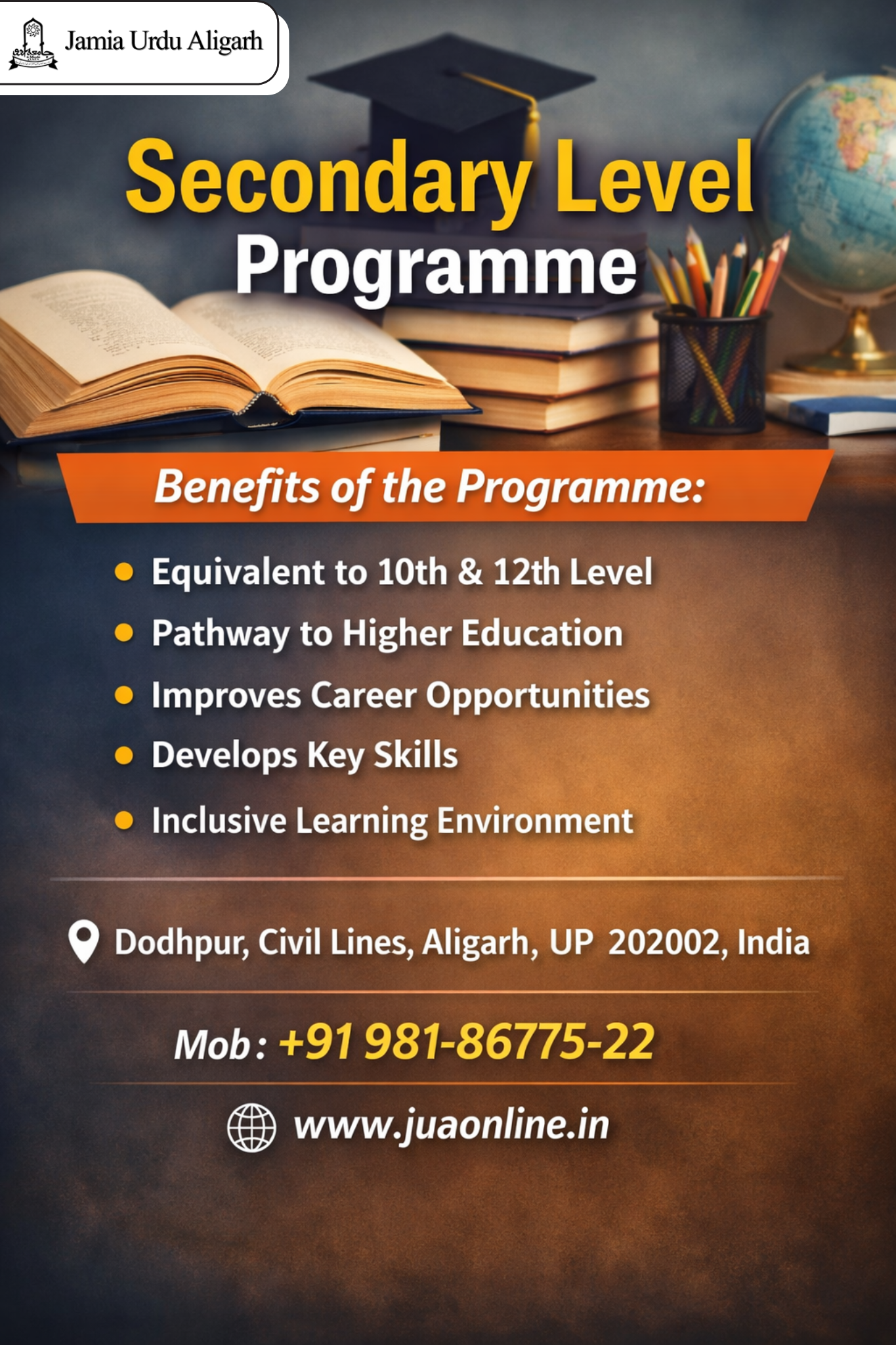 The Secondary Level Programme is the stage of education after primary school that prepares students for higher education and careers. It includes qualifications equivalent to 10th and 12th standards, such as the Adeeb and Adeeb E Mahir programs.