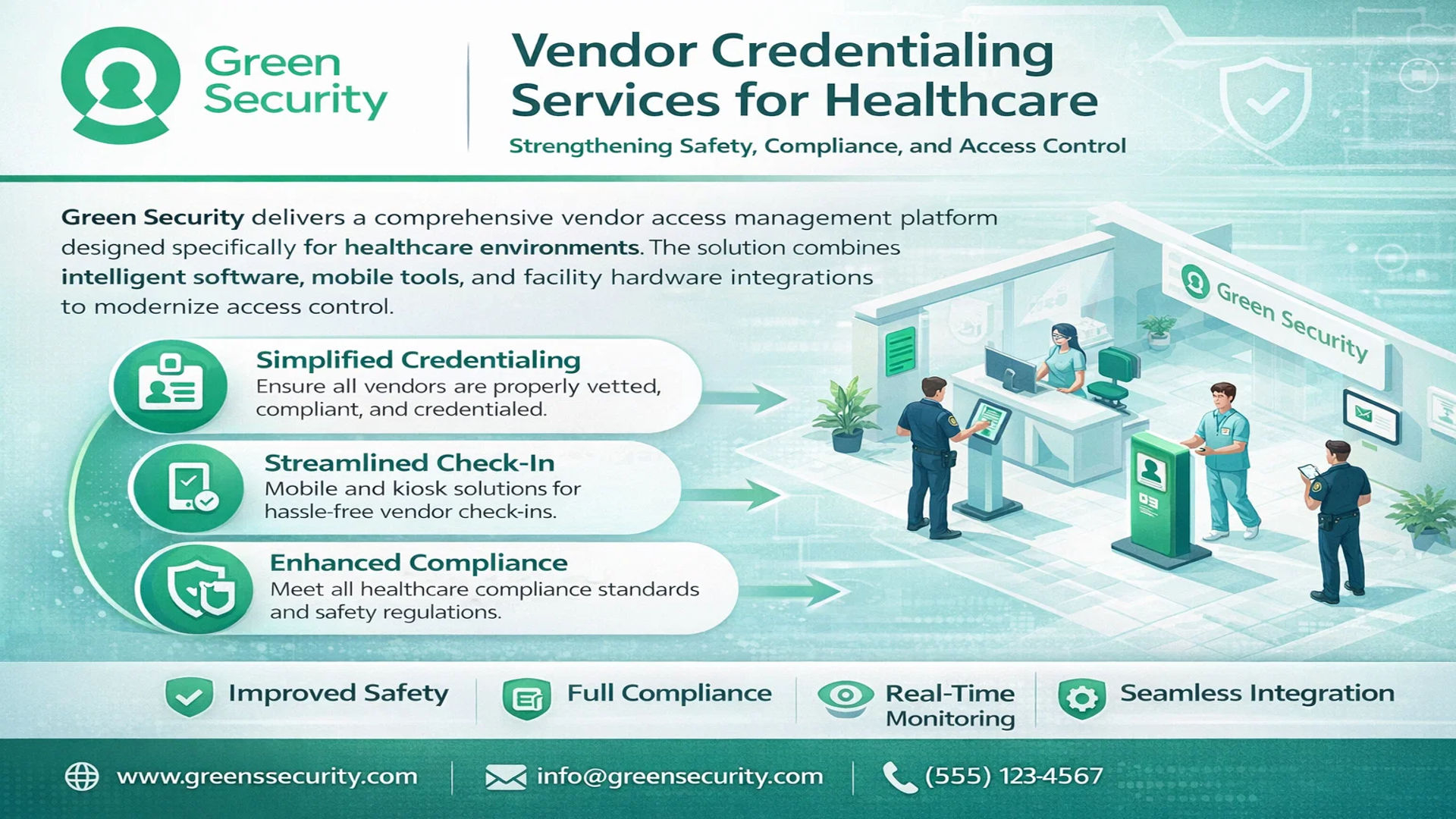 Green Security provides advanced vendor credentialing services for healthcare facilities, improving compliance, patient safety, and vendor access control with mobile, AI-assisted, and SOC-certified solutions.