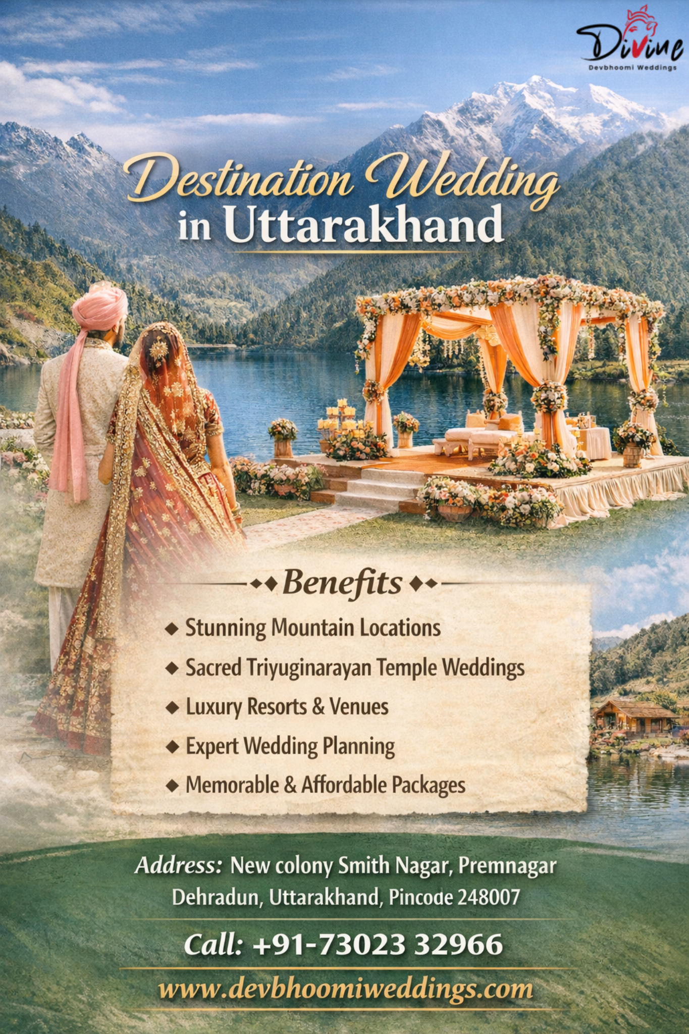 Organizing a destination wedding in Uttarakhand is a beautiful way to start your married life surrounded by nature and spirituality. Whether you choose a luxury resort in Mussoorie or a sacred triyuginarayan wedding, Uttarakhand offers unforgettable memories.