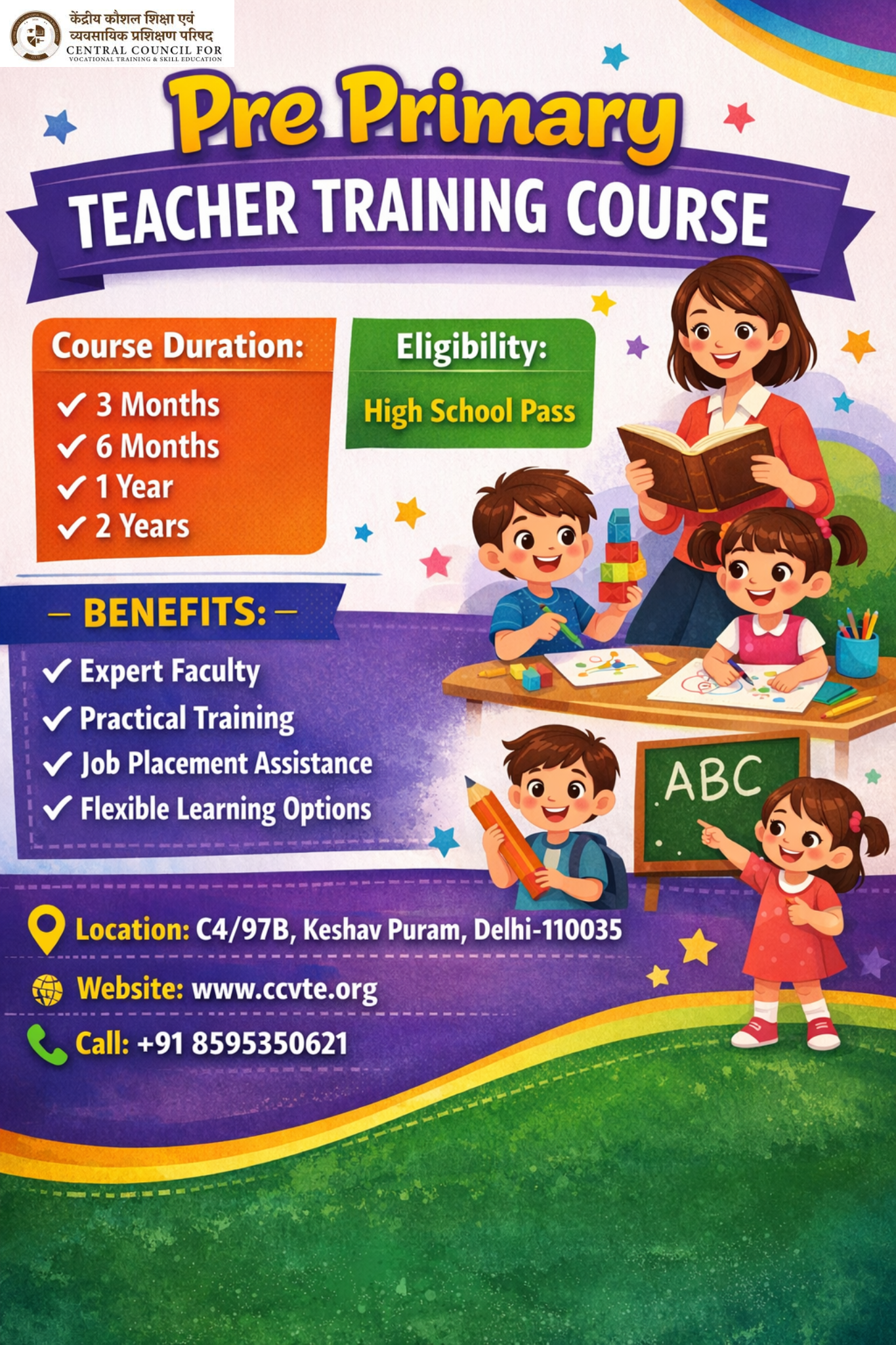 The demand for qualified preschool teachers in India is growing rapidly as parents and schools increasingly recognize the importance of early childhood education. A pre primary teacher training course is one of the most effective professional programs for individuals who want to build a successful career in teaching young children. This course prepares candidates with the right knowledge, practical skills, and teaching techniques required to manage and educate children between the ages of 2 to 6 years.