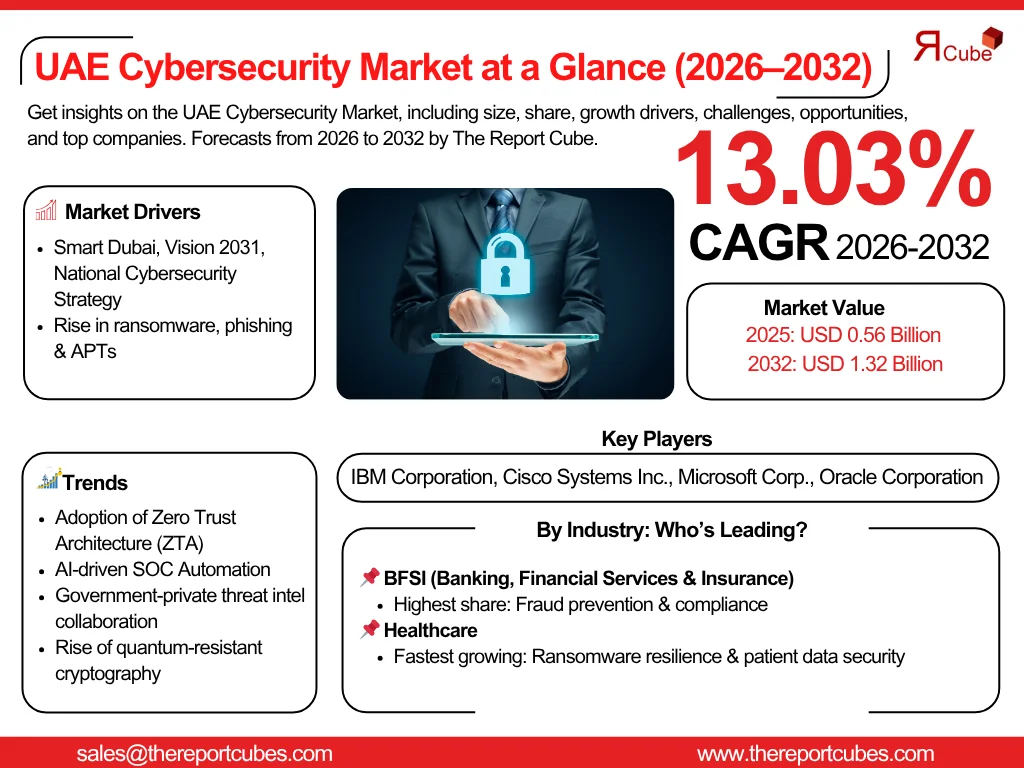 The UAE Cybersecurity Market Research Report 2026–2032 by The Report Cube offers comprehensive insights, including market size, share, trends, and growth projections.
