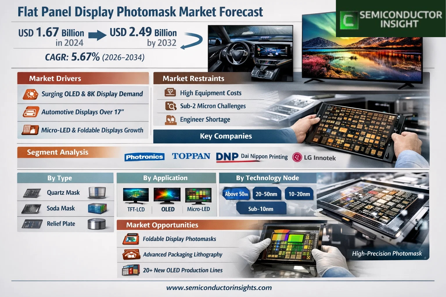 - Rising 8K and OLED display demand pushing photomask precision requirements, with OLED-specific demand growing over 18% annually