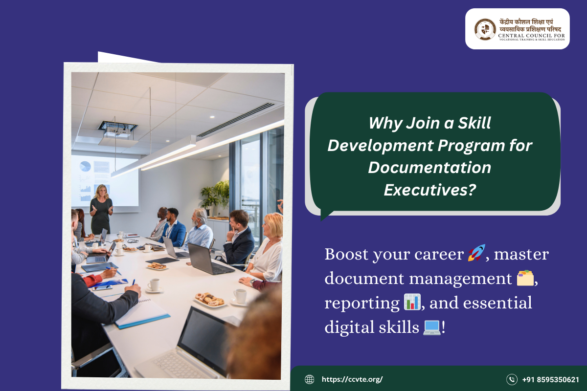 Apart from a career as a documentation executive, students can explore a variety of skill-based courses offered by CCVTE (Council for Vocational Education and Skill Development) to boost their employability and career growth. These courses are designed to provide practical knowledge and hands-on training in multiple domains.