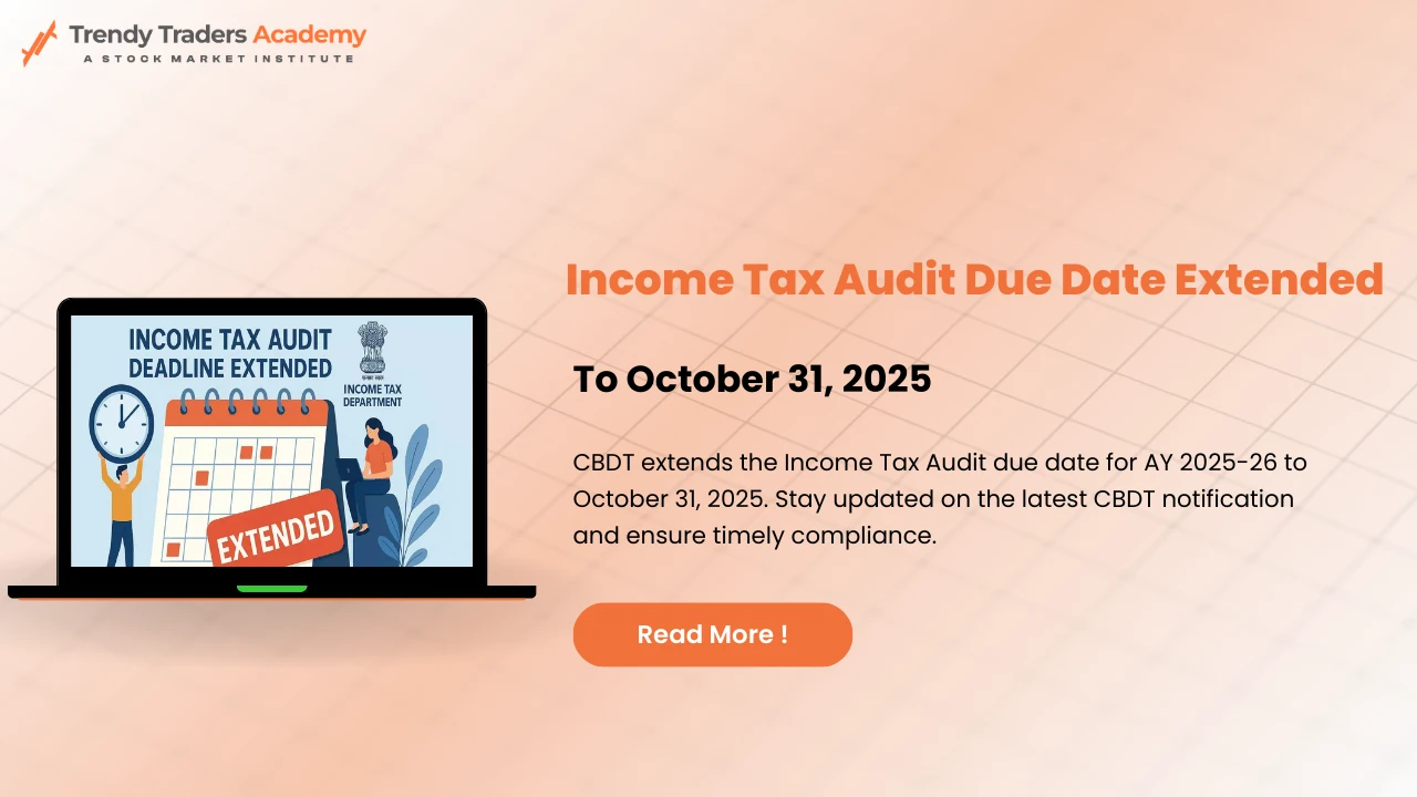Stay updated with the Income Tax Audit Due Date Extension 2025 by CBDT, understand audit provisions under the Income Tax Act, and explore online stock market courses to bolster your knowledge.