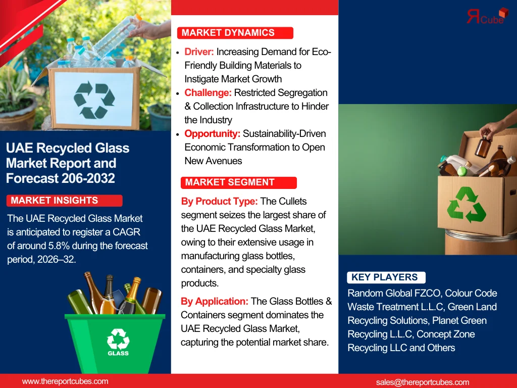 According to The Report Cube’s latest research study UAE Recycled Glass Market is anticipated to register a CAGR of around 5.8% during the forecast period, 2026–32.