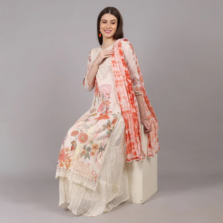 A long cotton suit is not banned for casual wear. With the right fabric and design, it can easily function as a festive or formal dress. For the office, solid cotton suits with elegant neck patterns work well, while printed cotton suits are ideal for casual outings. On special occasions, an embroidered or ornate long cotton suit connected to a silk or chiffon scarf can make a rich ethnic vibe. Its adaptability makes it one of the most practical ethnic wear options.