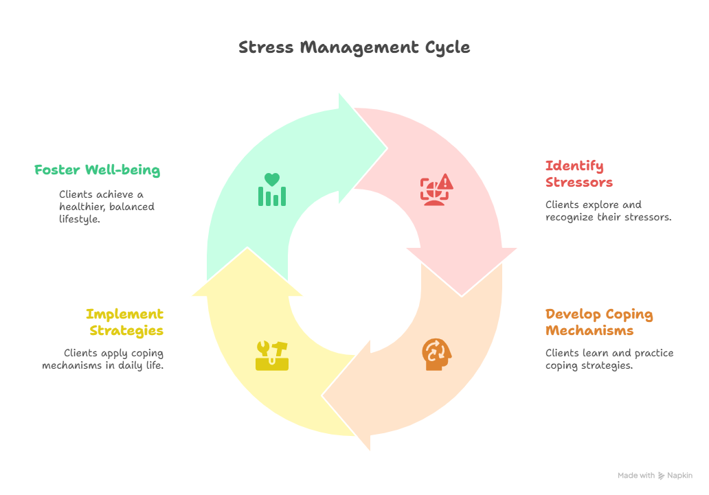 Sammen taler I ikke bare om stress; I bygger en praktisk og personlig værktøjskasse til at håndtere det. Dette kan inkludere: