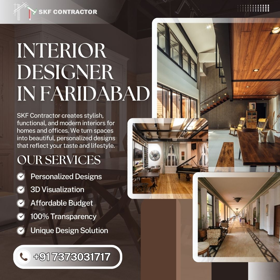 At SKF Contractor, we specialize in delivering innovative designs, premium materials, and flawless execution. Our team ensures every corner of your space tells a unique story of beauty and sophistication. If you’re planning a renovation or starting from scratch, trust a interior designer in Faridabad to bring your vision to life with perfection and detail.