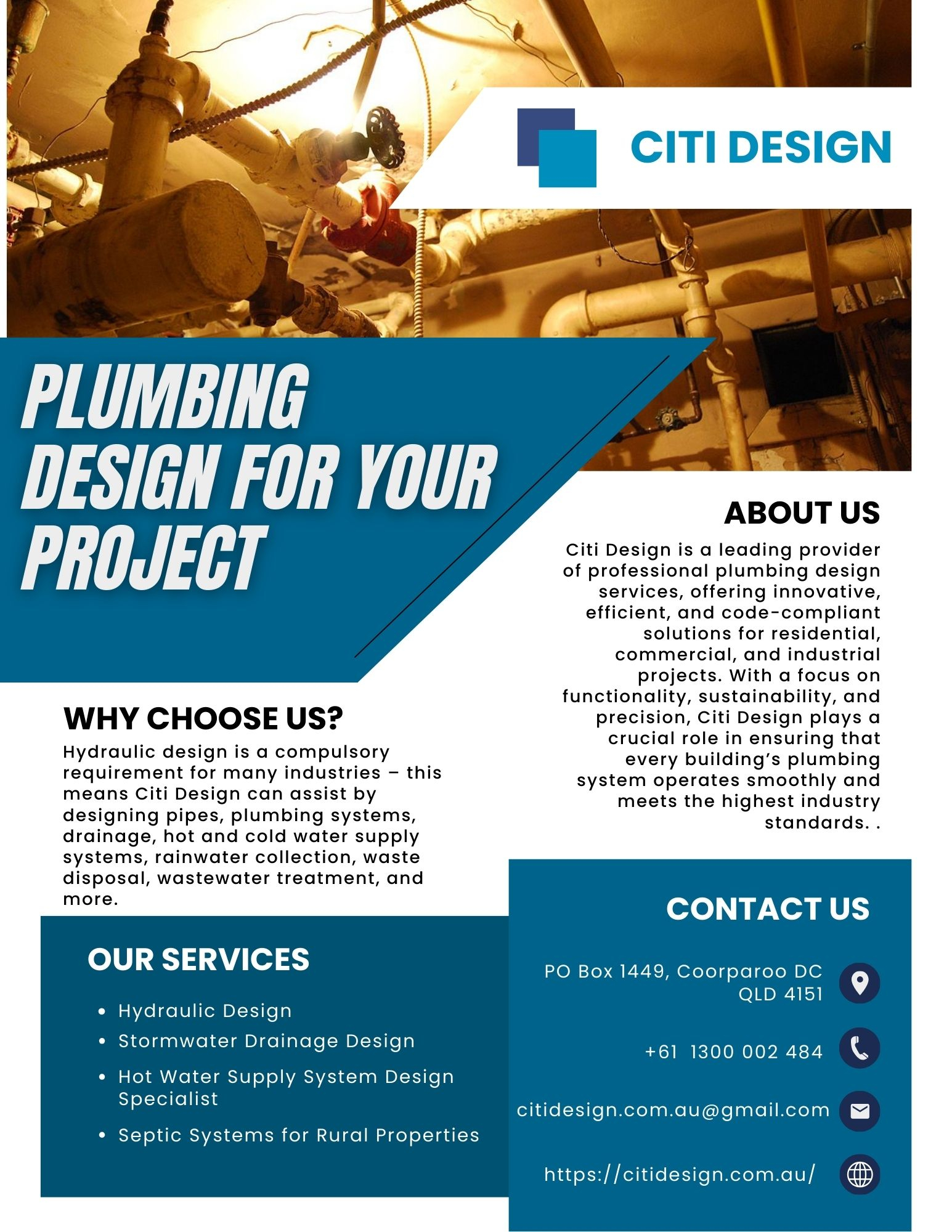 Citi Design is an Australian firm specializing in hydraulic and plumbing system design, with more than 20 years of experience in the commercial, industrial, and trade waste sectors. Headquartered in Brisbane, they primarily serve South East Queensland, though they also offer consultations and design services nationally. Their core competency lies in delivering hydraulic-compliant designs that satisfy regulatory requirements while remaining cost-effective and practical. They combine CAD drafting expertise with hands-on plumbing knowledge—so their designs are not only visually accurate but also workable in the field.