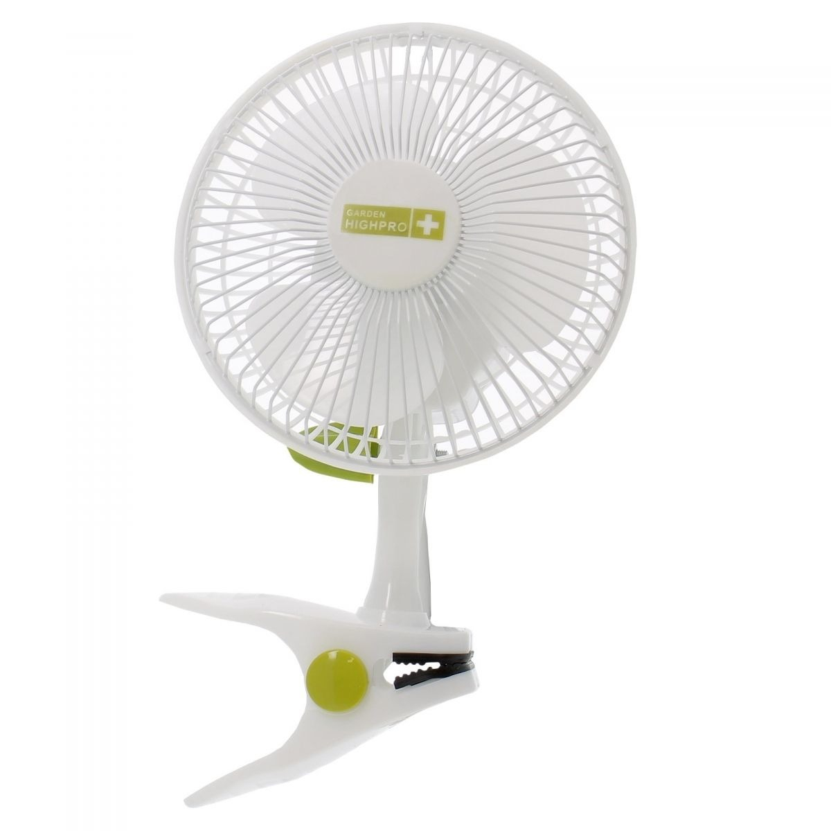 Ce ventilateur Clip Fan Garden Highpro de 15W dispose de 2 vitesses (2100 tours/minute) + stop et le diamètre de sa grille est de 15cm.