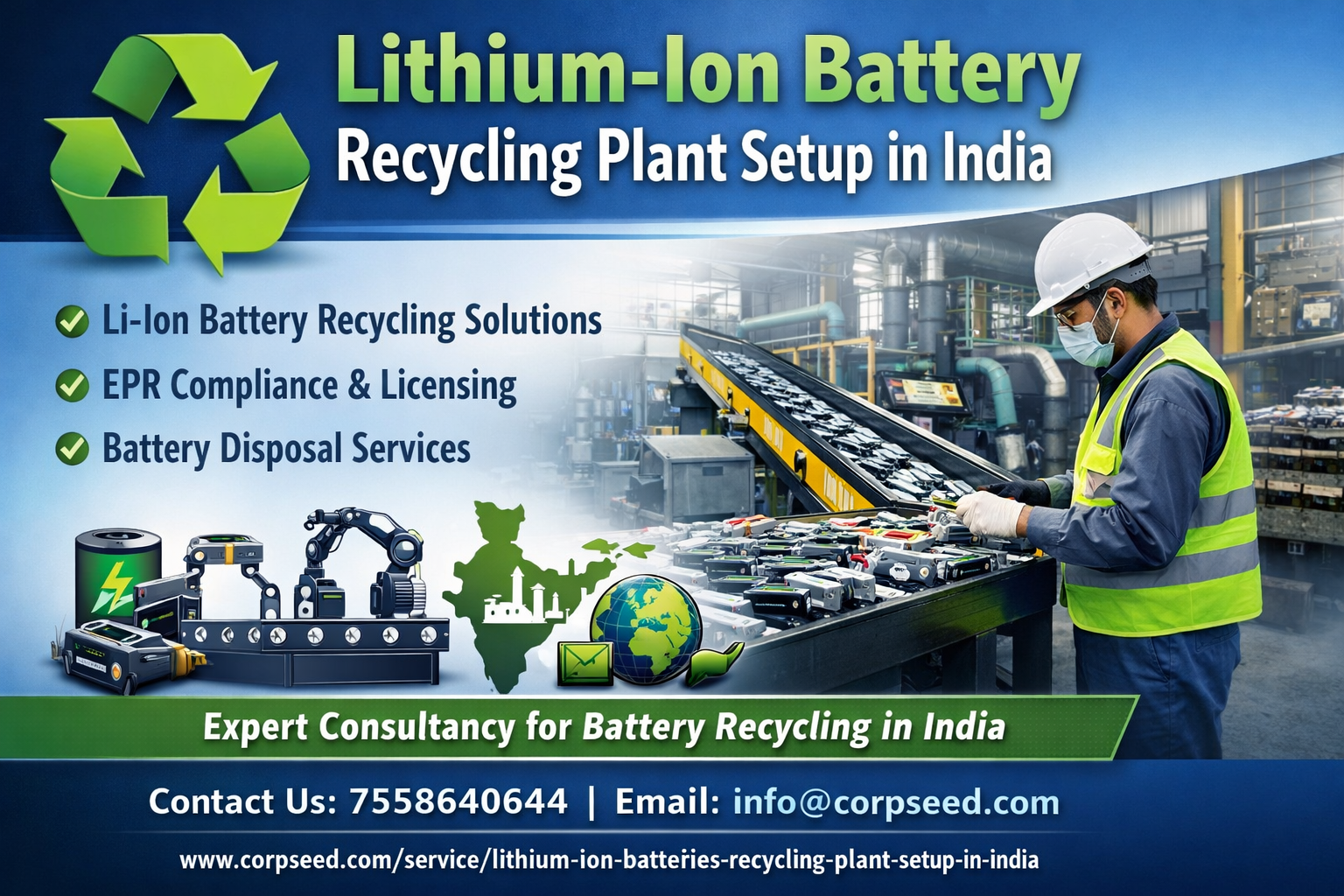 Click Here :- https://www.corpseed.com/service/lithium-ion-batteries-recycling-plant-setup-in-india
