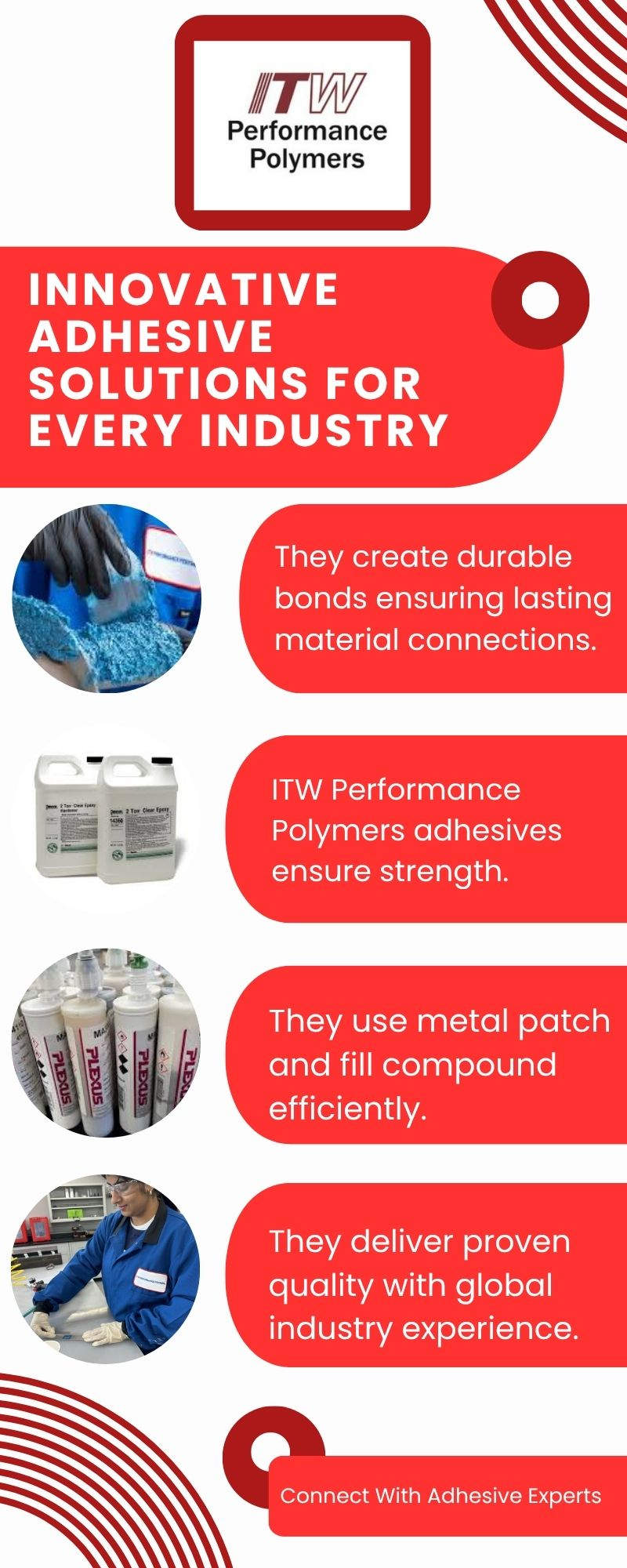 ITW Performance Polymers provides high-quality metal patch and fill compound solutions designed for durable and long-lasting repairs. Their products offer superior adhesion, corrosion resistance, and easy application for industrial maintenance needs. With proven performance and trusted innovation, they help industries restore and strengthen metal surfaces effectively. Visit ITW Performance Polymers for more details.