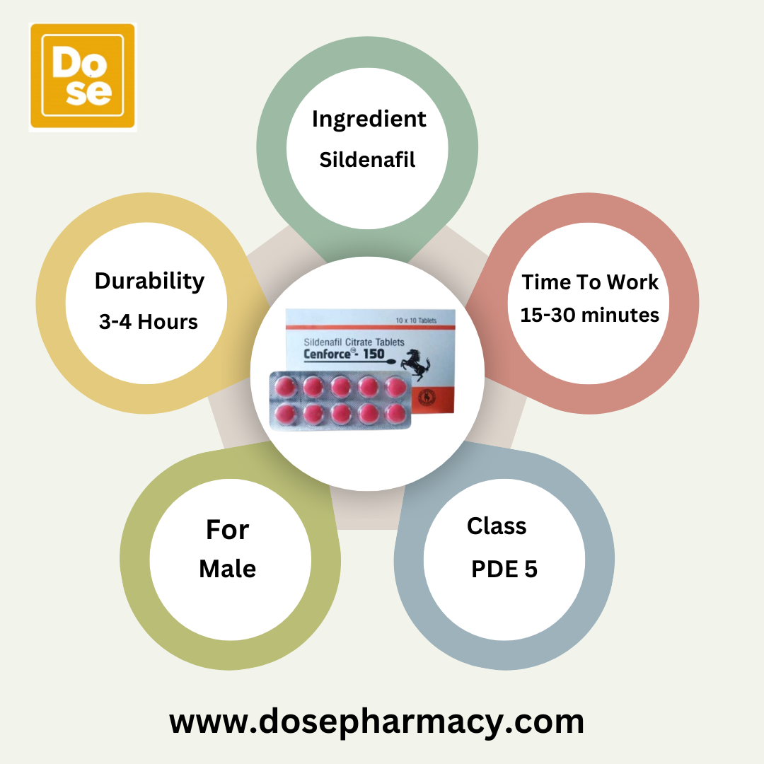 For more info. visit : https://www.dosepharmacy.com/cenforce-150mg-tabletWhat is Cenforce 150mg? Cenforce 150mg is a prescription medication used to treat erectile dysfunction (ED) in men. It contains sildenafil citrate, the same active ingredient found in Viagra, and works by increasing blood flow to the penis during sexual stimulation. This helps men achieve and maintain a firm erection for satisfying sexual activity. The 150mg strength is considered a high dose, often prescribed when lower doses like 50mg or 100mg are not effective. Cenforce 150mg should be taken about 30–60 minutes before sexual activity, and its effects can last up to 4–6 hours. It is important not to take more than one dose in 24 hours. While effective, Cenforce 150mg may cause side effects such as headache, flushing, dizziness, nasal congestion, or stomach upset. It should not be used with nitrates or certain heart medications. Always consult a doctor before use to ensure it’s safe and appropriate for you. For more info. visit : https://www.dosepharmacy.com/cenforce-150mg-tablet0 Σχόλια 0 Μοιράστηκε 899 Views 0 Προεπισκόπηση -