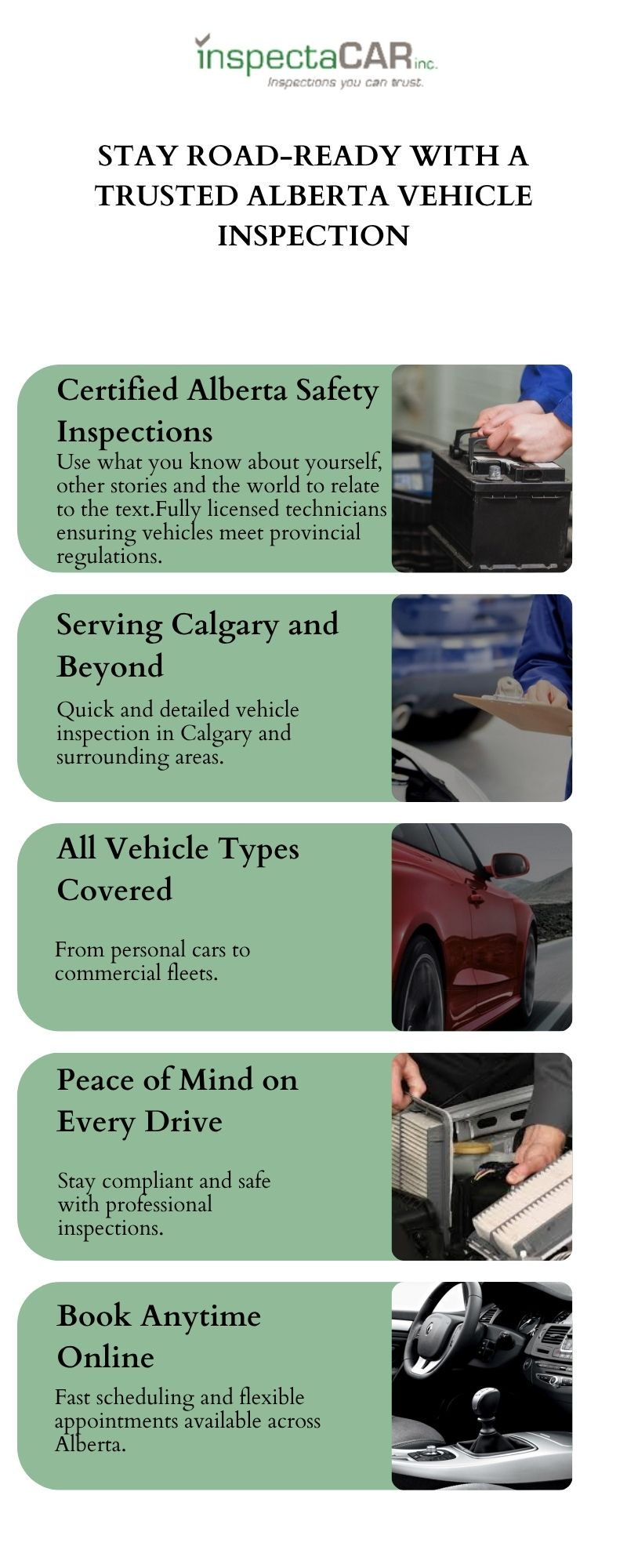 For more information, visit https://inspectacar.caComplete Vehicle Inspection Services by InspectaCAR in Alberta InspectaCAR delivers detailed vehicle inspection in Calgary and across Alberta, ensuring your ride meets all safety standards. From comprehensive Alberta safety inspection to pre-purchase evaluations and commercial vehicle assessments, they cover it all with accuracy and professionalism to keep you confidently on the road. For more information, visit https://inspectacar.ca0 Comments 0 Shares 861 Views 0 Reviews -