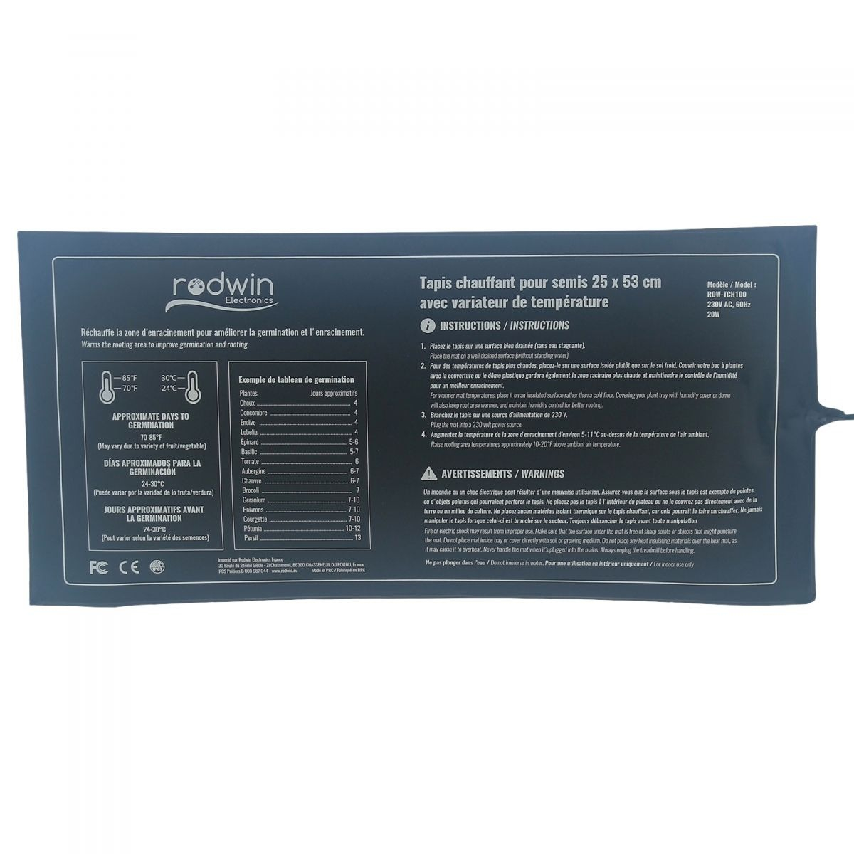 Tapis chauffant 20W - Avec variateur - RODWIN Electronics