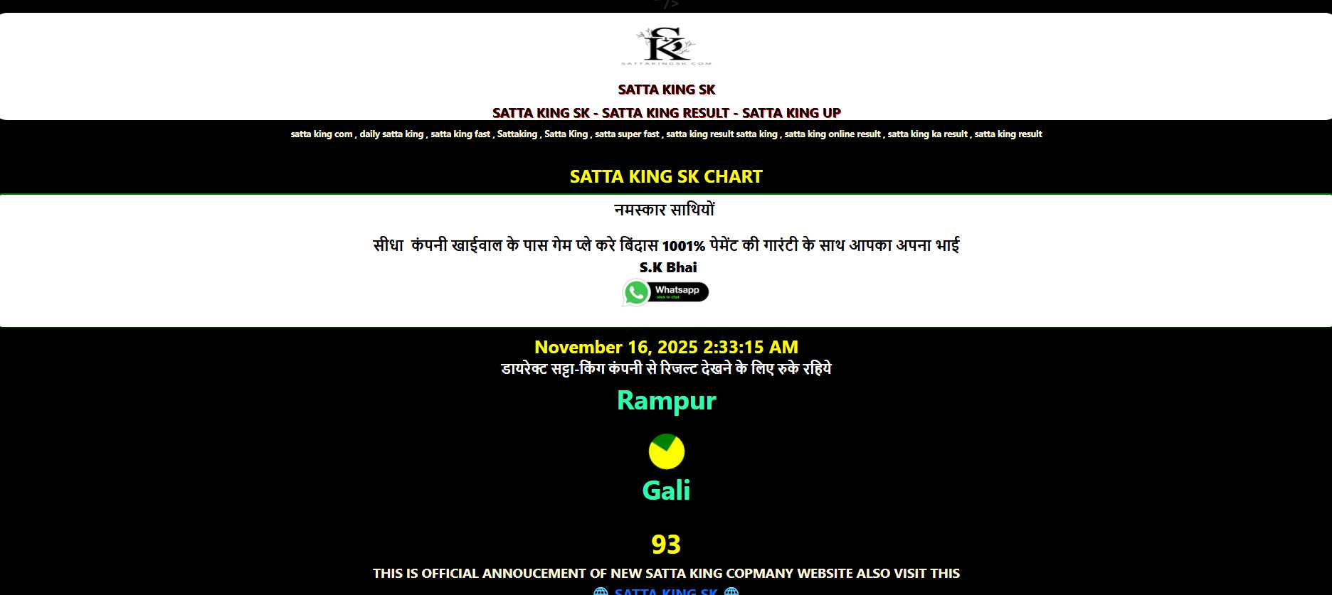 Satta King SK is an online platform that provides informational content related to various Satta and number-based game results that are commonly searched by users. Our website focuses on publishing result updates, historical charts, and general guidance to help visitors understand how these markets are typically followed online. We do not promote or encourage betting or gambling of any kind. All information shared on the site is for educational and reference purposes only, and users are advised to stay aware of legal regulations in their region.