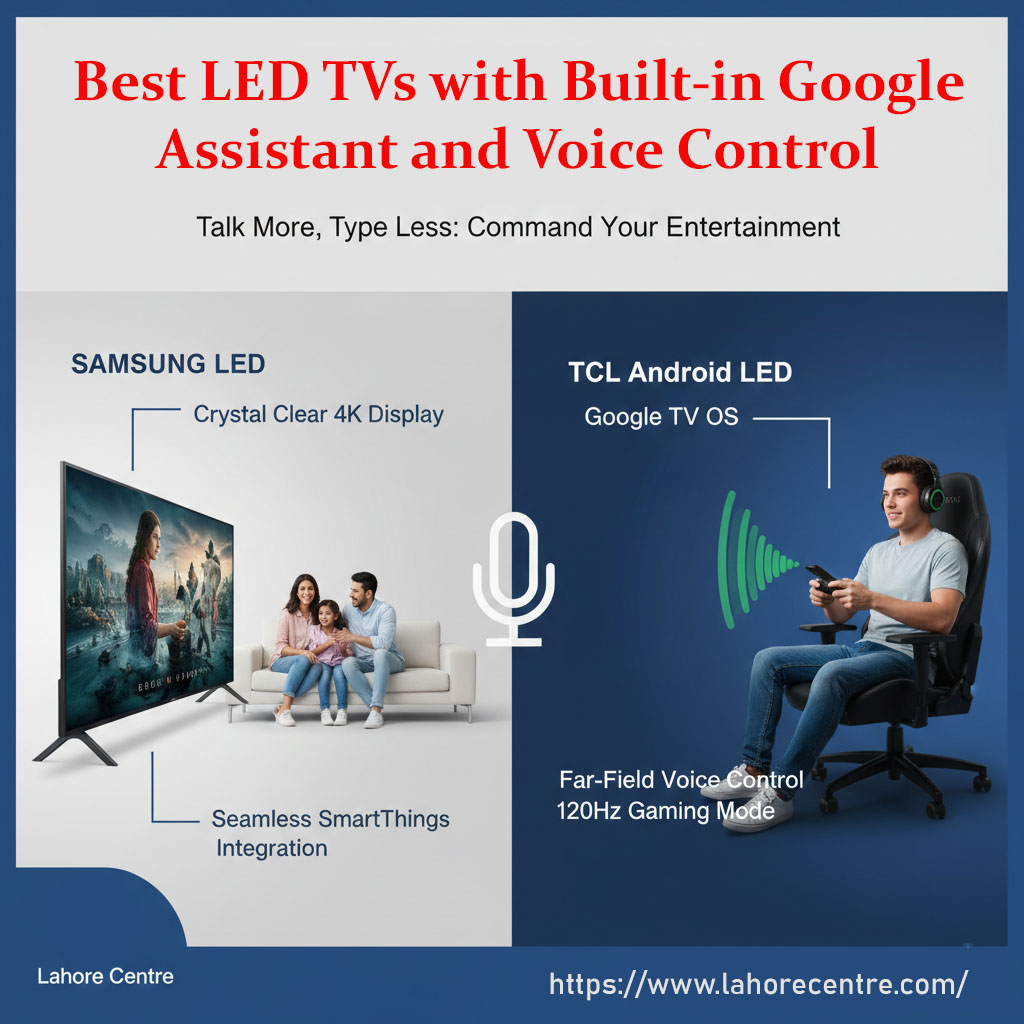 Enhance your home entertainment in 2026 with the best LED TVs featuring Google Assistant. Shop top brands like Samsung, LG, and TCL at Lahore Centre.
